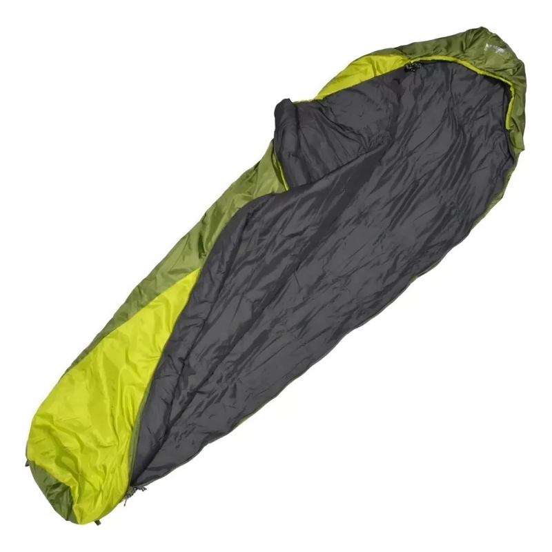 Bolsa de dormir confeccionada en Polyester 290 T de tejido 100% RipStop; diseño tipo sarcófago será una muy buena aliada en las noches de mucho frío gracias a su abundante relleno de fibra hueca que en conjunto con su diseño te mantendrá cálido y confortable por más tiempo. Ésta bolsa de dormir es ideal para campamentos en lugares de clima frío.