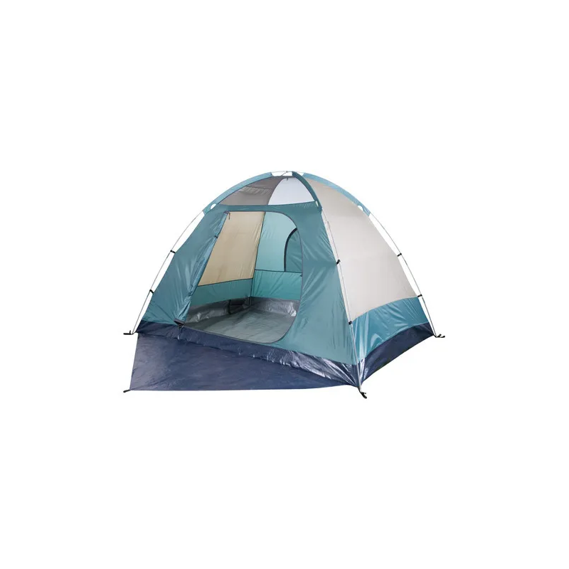 Su estructura de varillas de fibra de vidrio combinada con tejido exterior Poly Oxford 150D y costuras selladas garantiza resistencia al agua (columna de 3000 mm) y durabilidad frente a lluvia moderada y viento. El piso de polietileno con silver coating proporciona aislamiento térmico y barrera contra la humedad ascendente del suelo, mientras que la ventilación frontal y trasera asegura una excelente circulación de aire para reducir condensación y mantener un interior fresco y saludable.