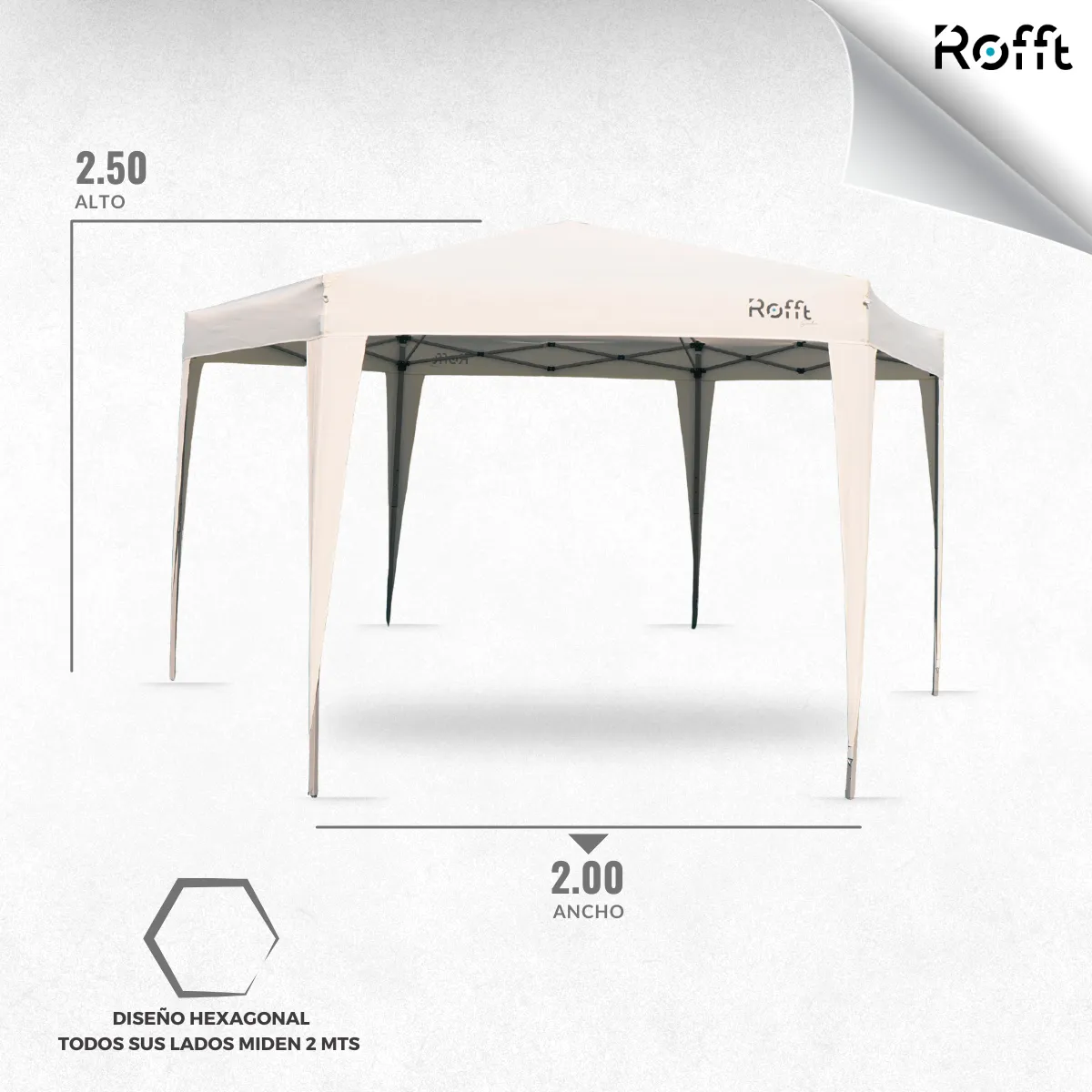 - Dimensiones abierto: Hexágono de 2 m por lado
