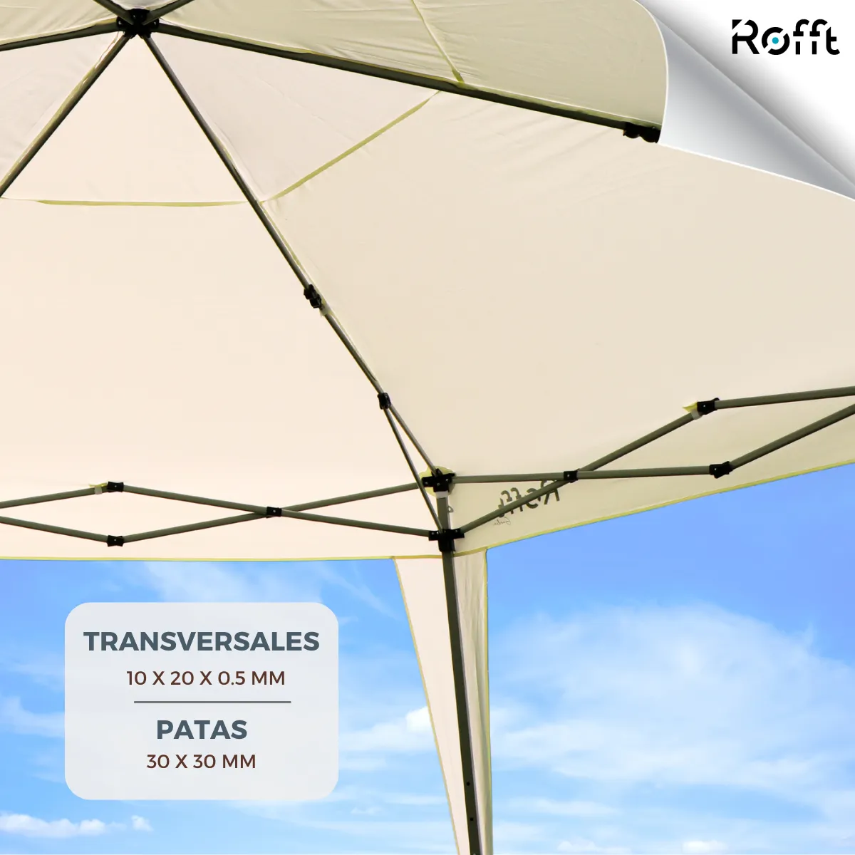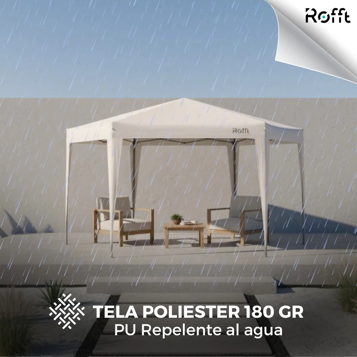 - Tela: Poliéster 180g, impermeable, resistente a rayos UV
