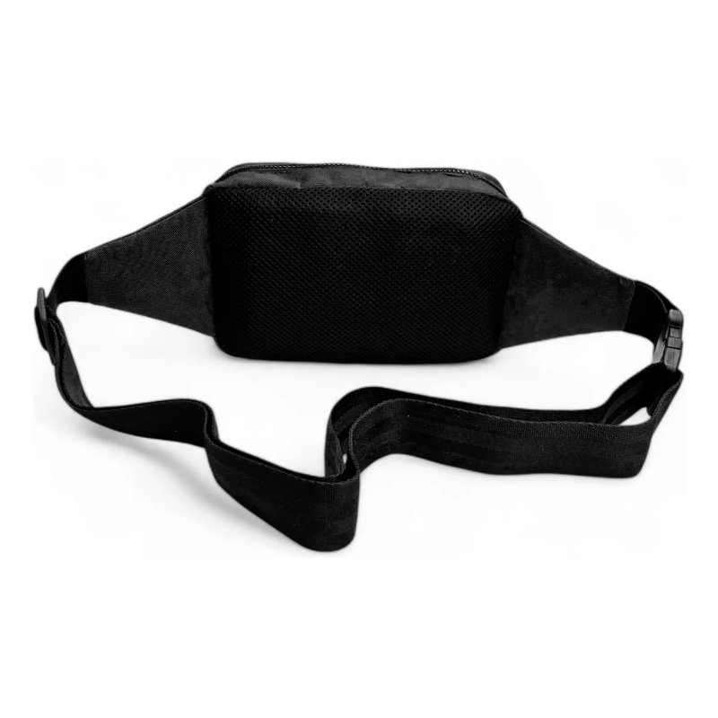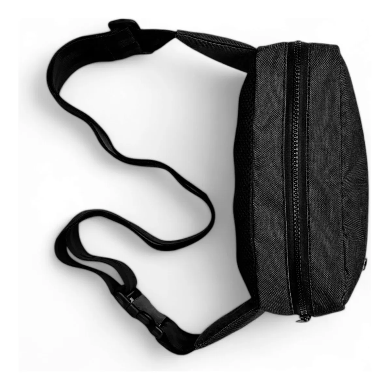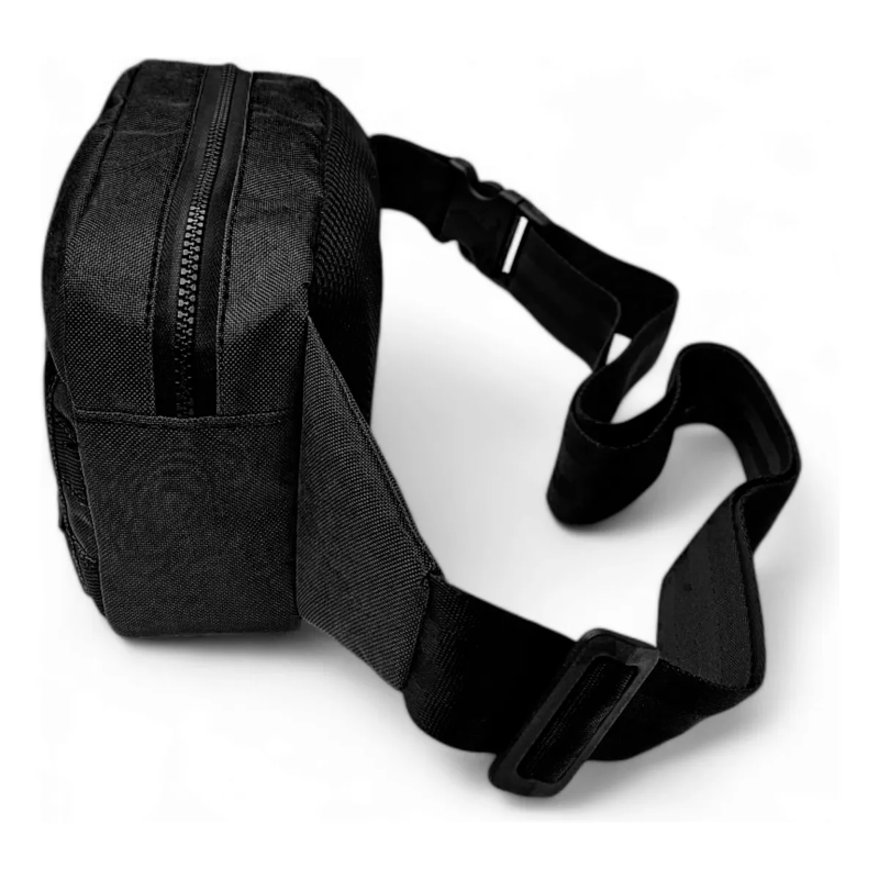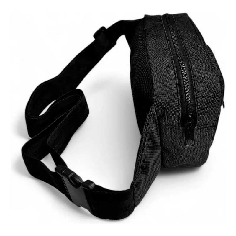 Fabricada en cordura reciclada de alta calidad, esta riñonera negra de diseño liso es a prueba de agua, ideal para actividades al aire libre, deportes o uso diario.