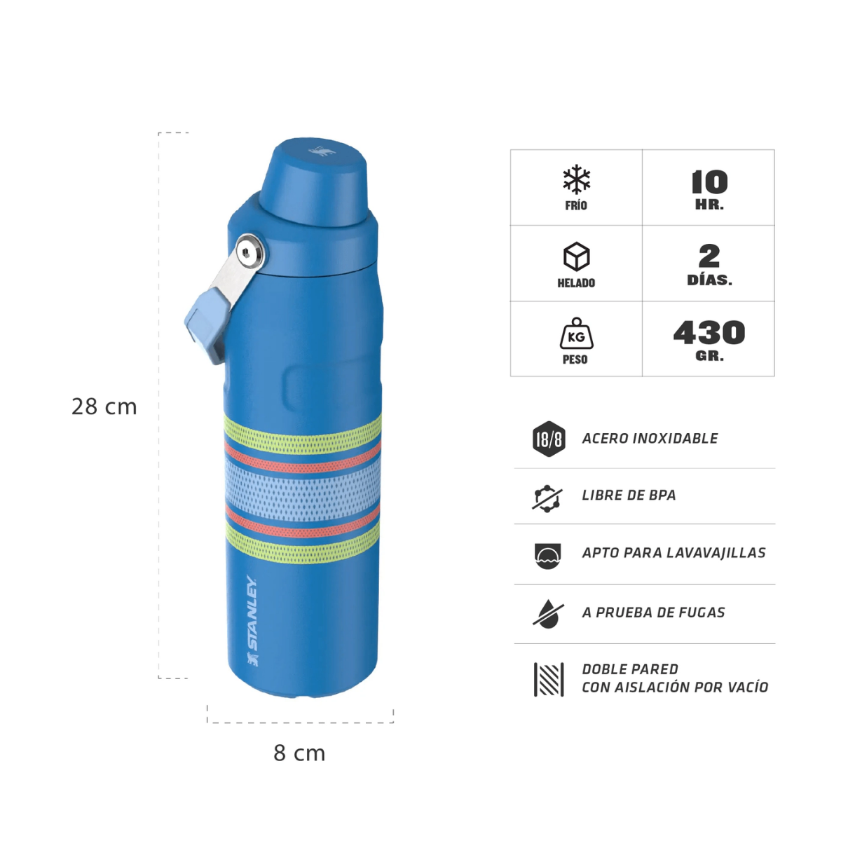 Botella elegante y práctica diseñada para mantener tu hidratación en entrenamientos intensos, el trabajo, el colegio o cualquier momento del día. Fabricada con tecnología AeroLight™ de acero inoxidable, es un 33% más ligera que las botellas estándar, manteniendo una eficiencia térmica excepcional para conservar las bebidas a la temperatura ideal. Su tapa a prueba de fugas, extraíble y versátil, facilita el flujo de agua y la limpieza, mientras que su diseño moderno en varios colores combina estilo y funcionalidad para la vida en movimiento.