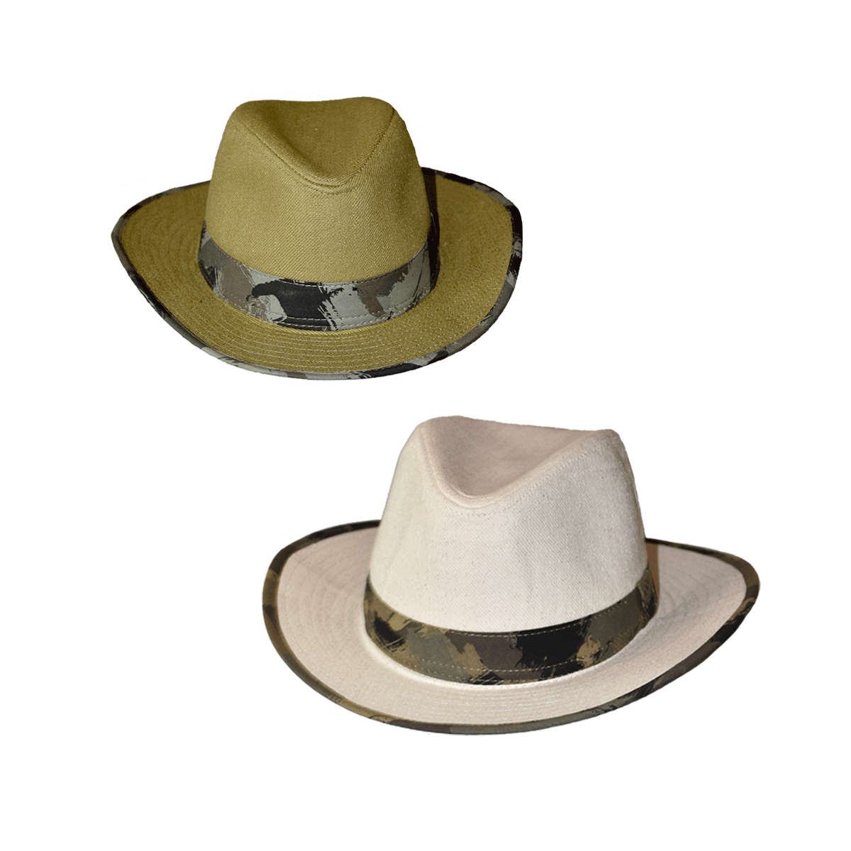 Sombrero 100% algodón con ribete y cinta camuflado.