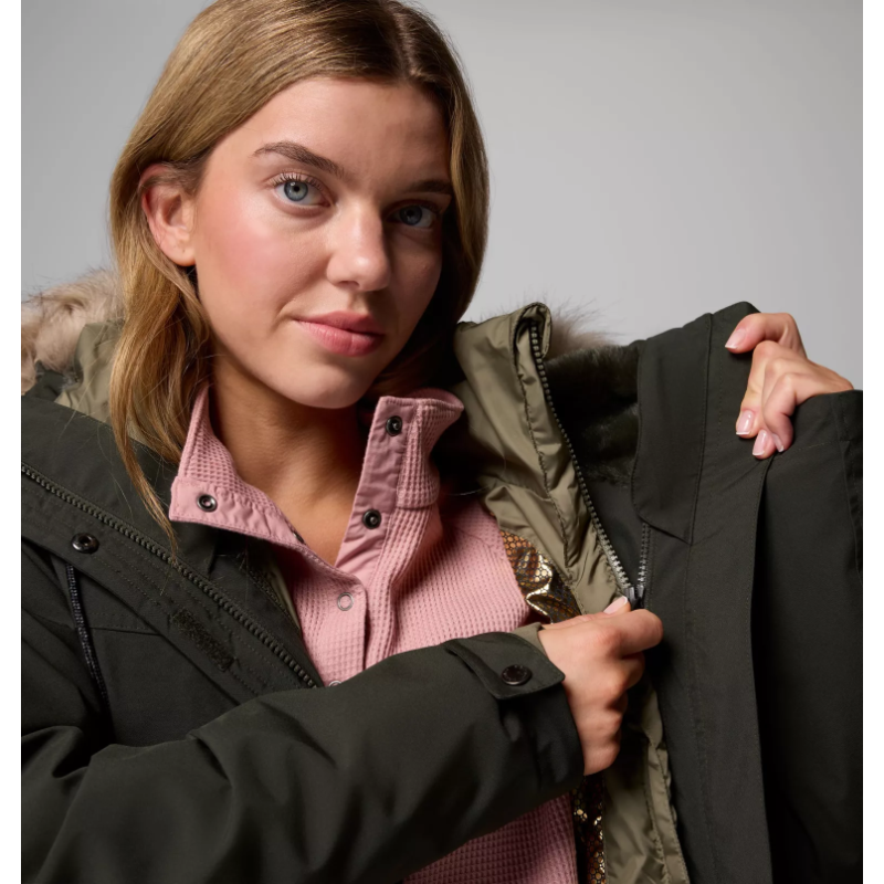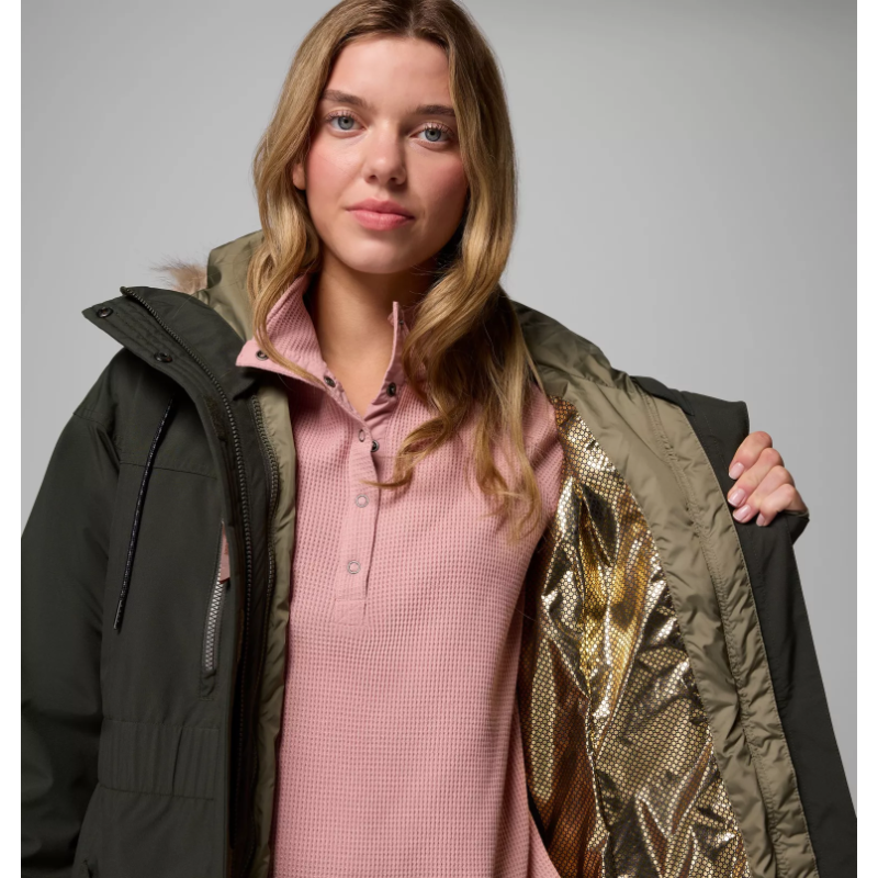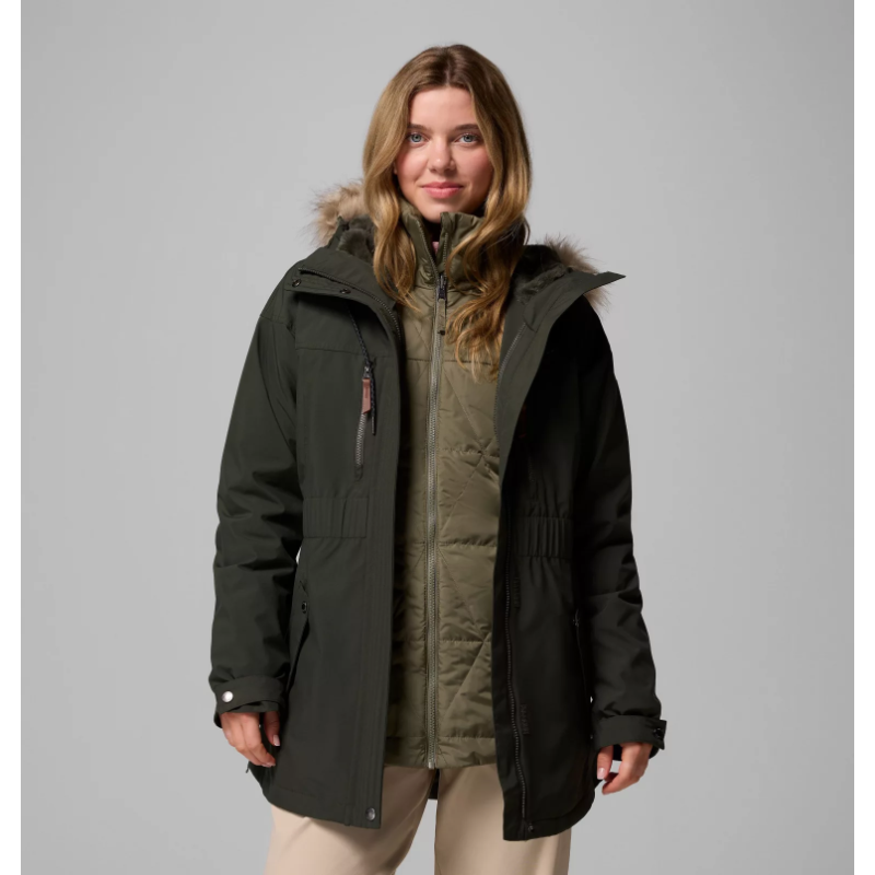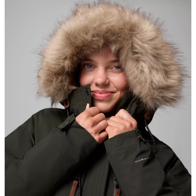 Parka versátil para mujer diseñada para escapadas urbanas y paseos por la naturaleza en invierno, que combina calidez acogedora con un diseño elegante y funcional. Su aislamiento sintético proporciona un calor ligero sin volumen excesivo, mientras que la tecnología Omni-Tech™ asegura impermeabilidad y transpirabilidad para mantenerla seca y cómoda en cualquier clima. Incluye múltiples bolsillos con cierres para accesorios esenciales y una capucha ajustable con forro de piel sintética, convirtiéndola en una aliada indispensable para explorar la ciudad o senderos naturales con estilo.