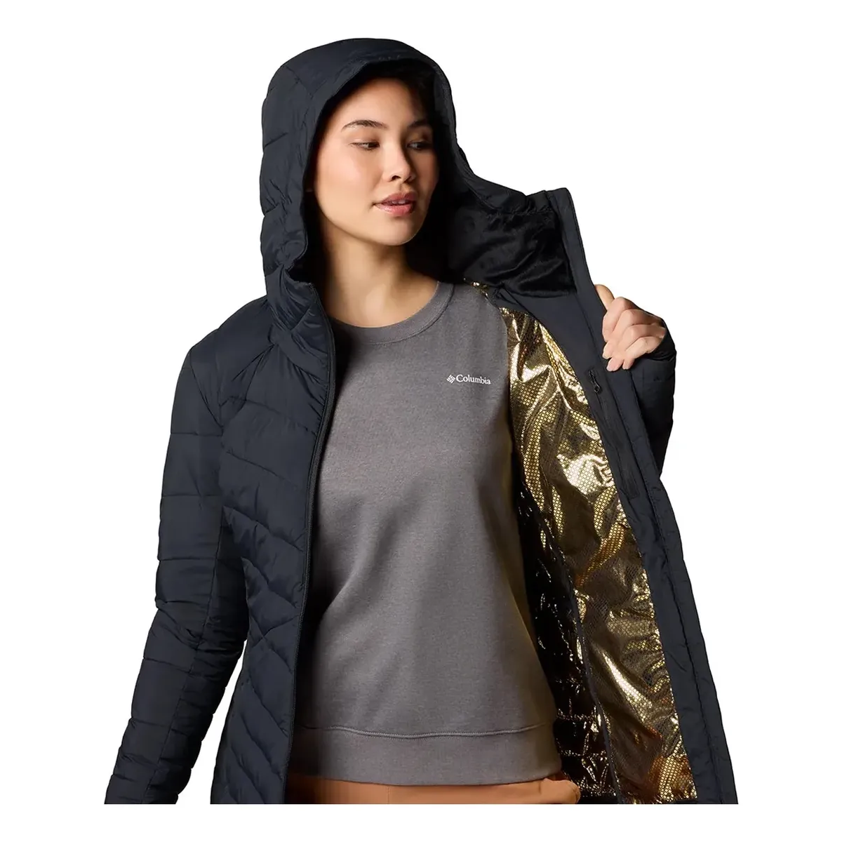Los pequeños puntos dorados de Omni-Heat Infinity reflejan tu calor corporal y te mantienen más caliente durante más tiempo, para que puedas estar afuera tanto tiempo como quieras.