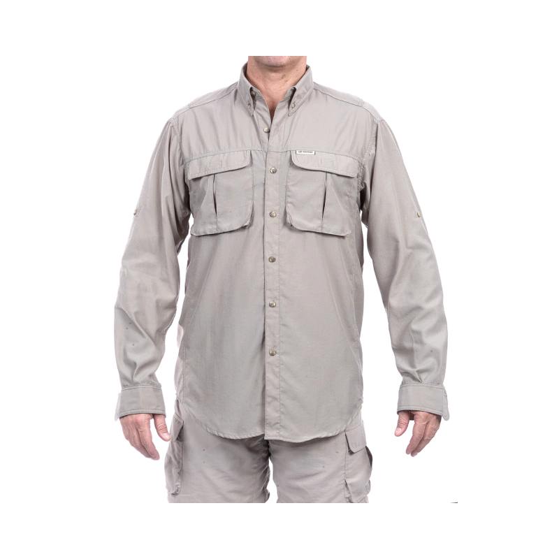 Camisa confortable, versátil para viaje y pesca hecha con tela muy liviana con protección solar. Mangas largas.