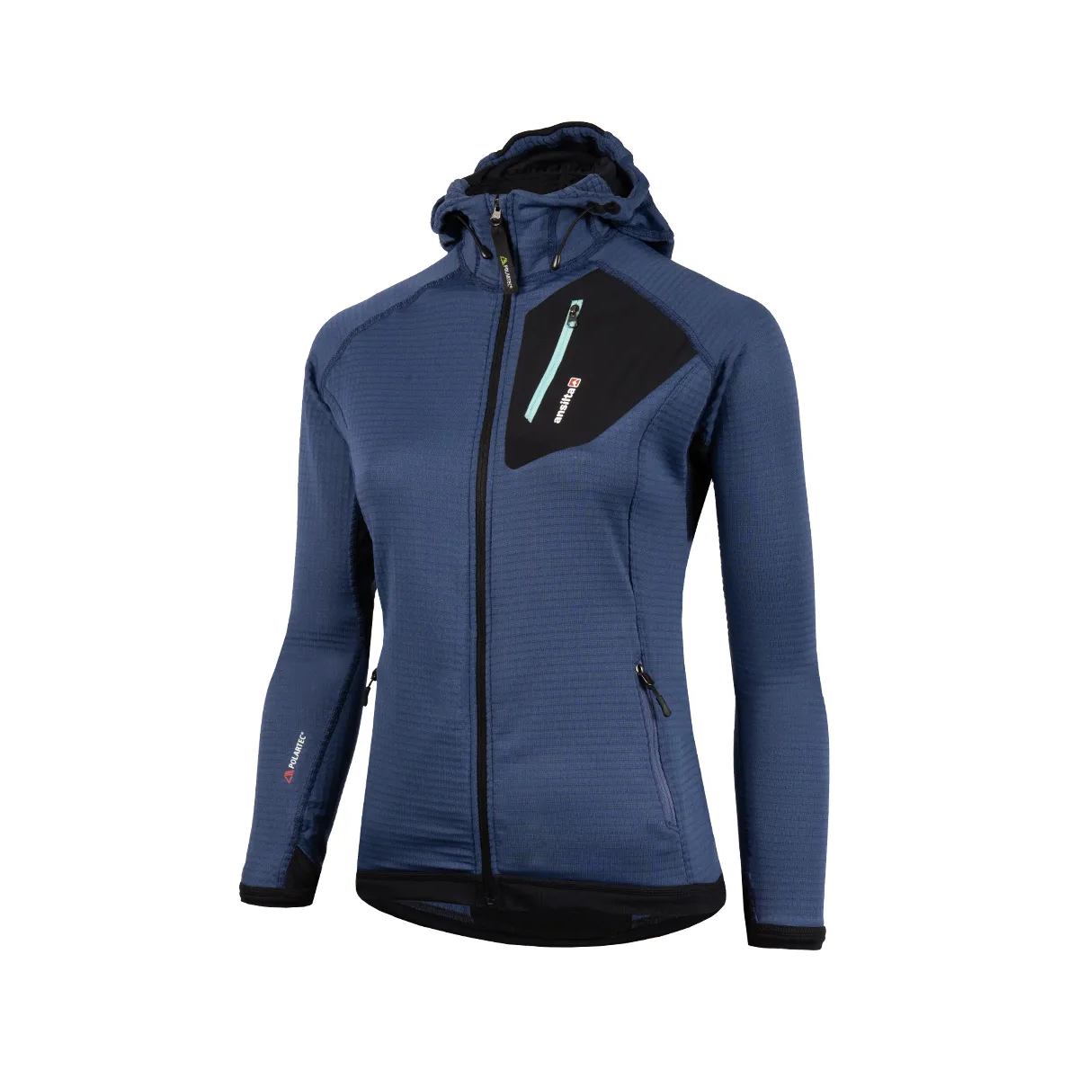 Campera de construcción híbrida diseñada para actividades aeróbicas, un infaltable para carreras de aventura donde el bajo peso, respirabilidad, secado rápido y compactabilidad son indispensables. Combina dos tejidos POLARTEC POWER GRID de diferente peso según las zonas que requieren mayor abrigo, o las que necesitan mayor ventilación, elasticidad y movilidad con menos volumen de tela. Estos tejidos poseen fibras recicladas, acabado odor resistant y protección solar.