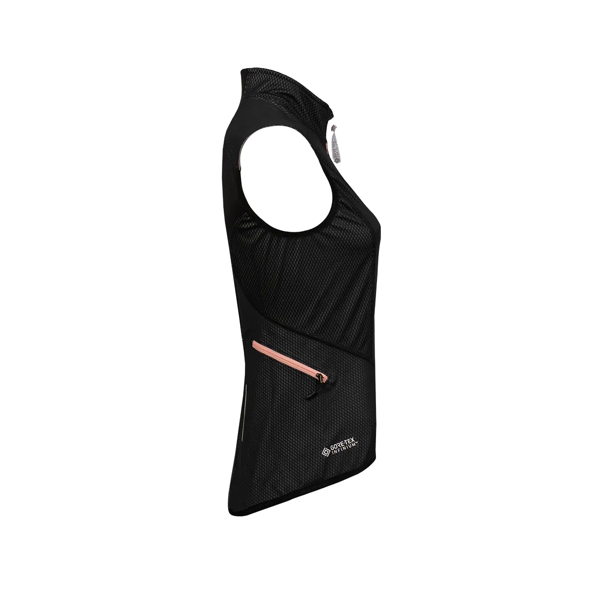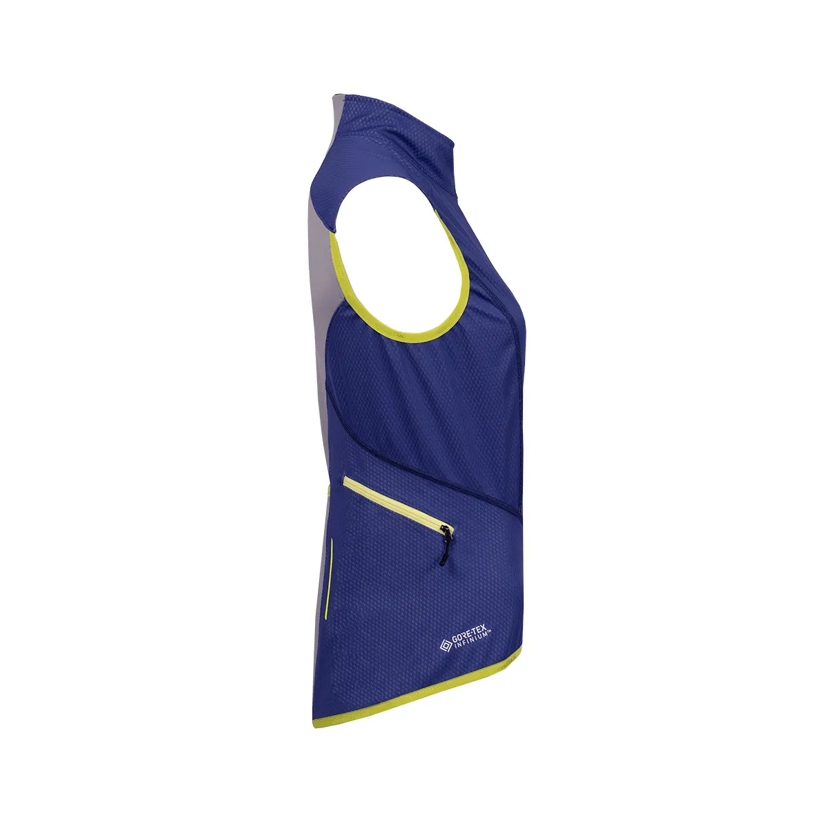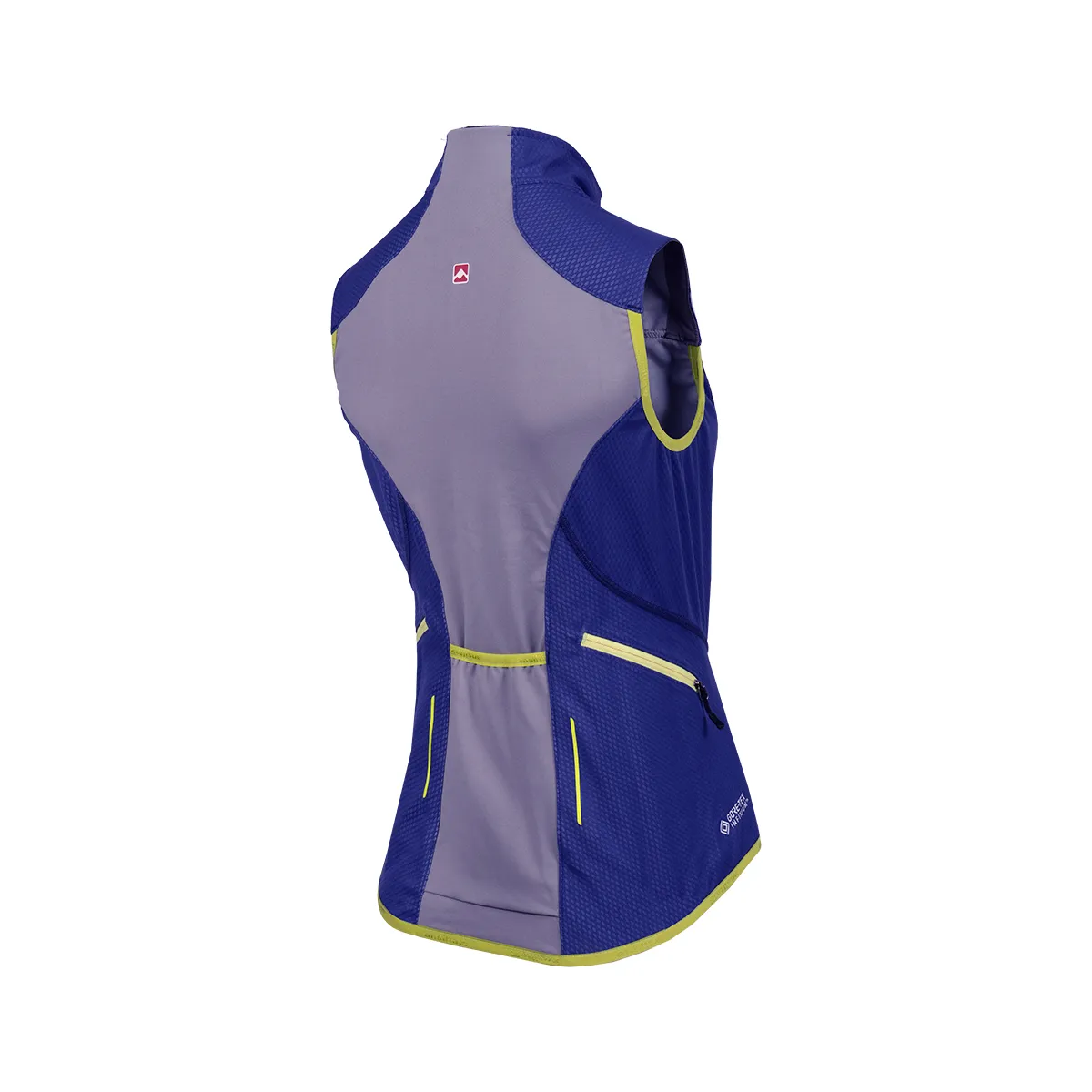 Prenda para ciclismo u otro deporte aeróbico de alta exigencia. Combina GORE-TEX Infinium Windstopper® en la parte frontal y trasera para proteger al usuario del viento, y POLARTEC® Power Stretch en la espalda para mejorar la movilidad. Tiene dos bolsillos a ambos lados de la zona lateral de la espalda, con cierre (apto para celular) y uno central elastizado.