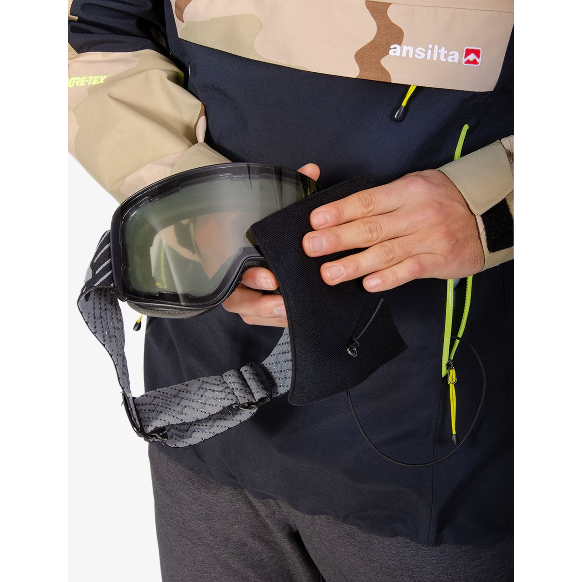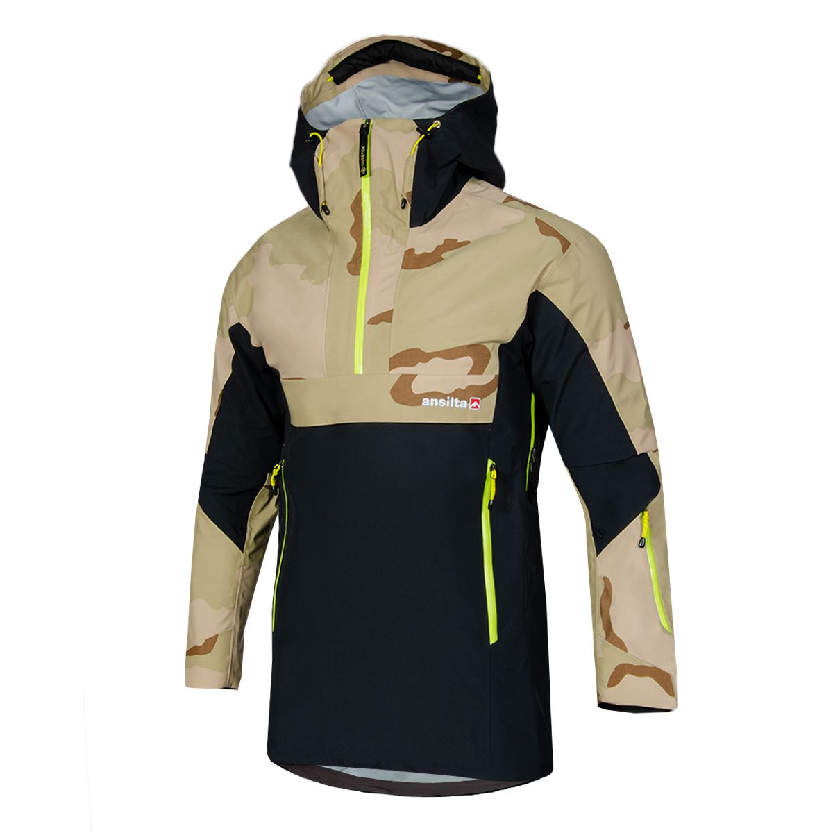 El Anorak SACHA es ideal para ski y snowboard fuera de pista. Es un producto confeccionado con Tecnología Gore tex performance de 3 capas, 100% impermeable y respirable, costuras termoselladas y todos sus cierres estancos. La combinación de tejidos aporta mayor resistencia en zonas clave. Con bases retro, reinventamos la funcionalidad para el freeride. Una prenda pensada para los amantes de los fuera de límites.