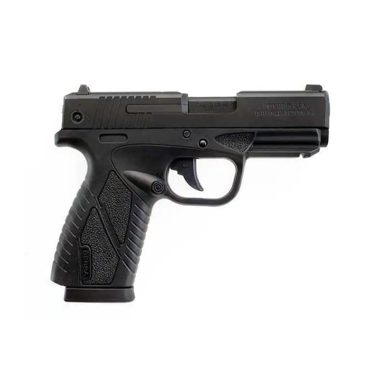 Su diseño ergonómico, con corredera tratada con Tenifer y acabado pavonado, incluye riel Picatinny, indicador de recámara cargada y seguros automáticos (caída, cargador, disparador).