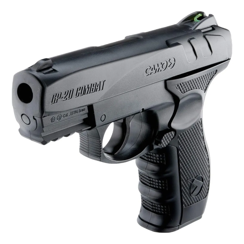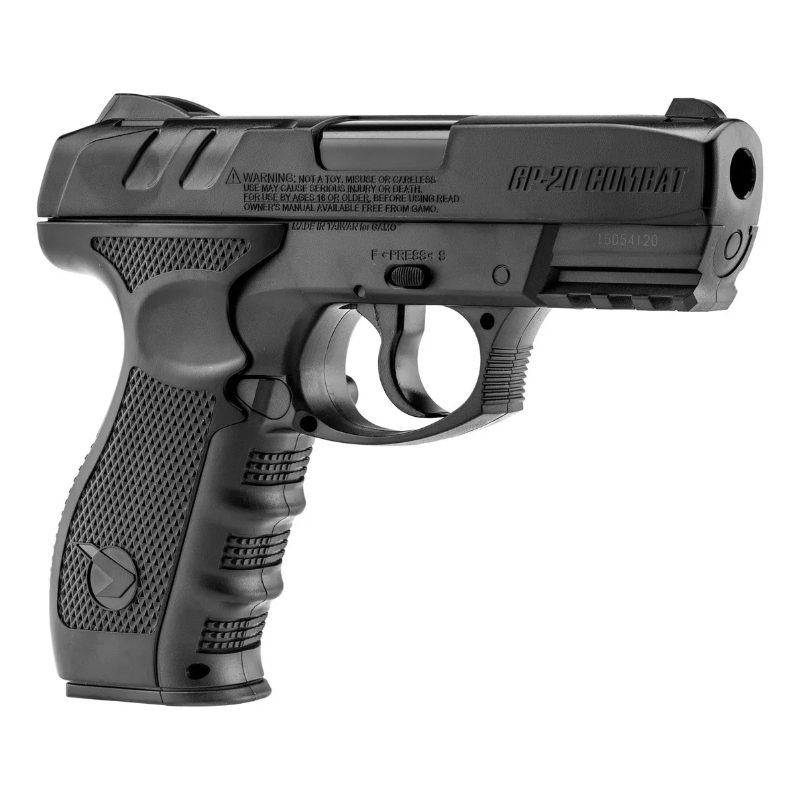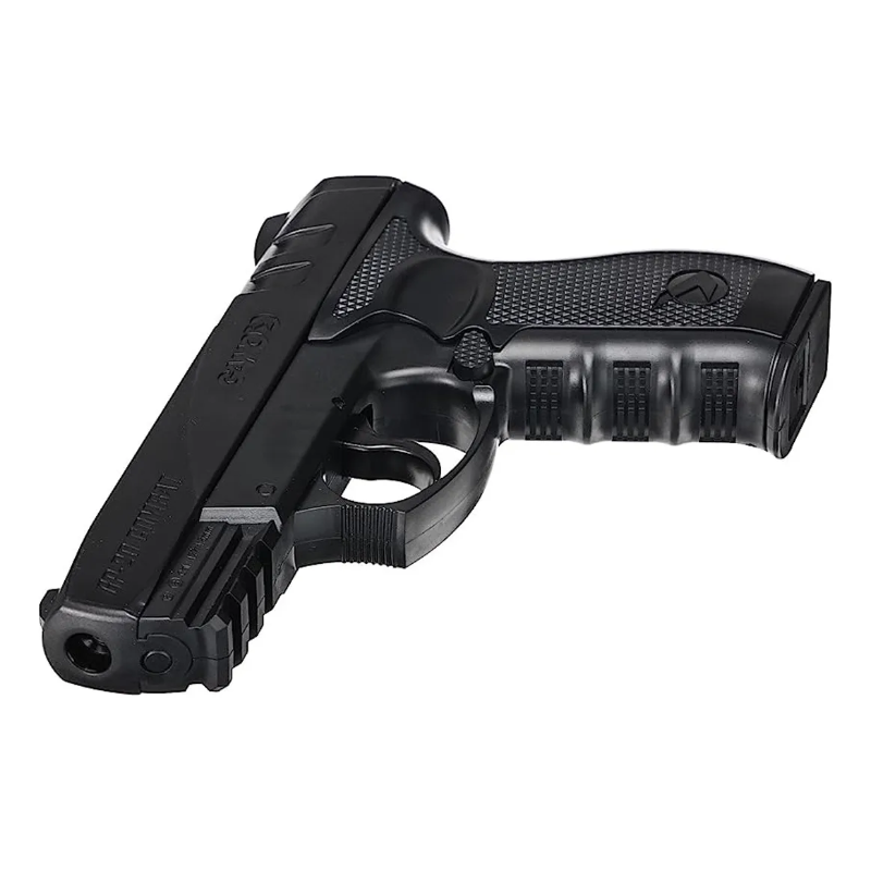 Pistola de aire comprimido CO2, versátil y compacta, ideal para plinking y tiro recreativo. Dispara BBs de acero de 4.5 mm (.177) a una velocidad de 400 fps (122 m/s) con 3 joules de energía, utilizando un cargador extraíble de 20 disparos y una bombona CO2 de 12 g alojada en la empuñadura. Su cañón liso de acero de 10.8 cm, empuñadura ambidiestra con textura de goma antideslizante, y miras fijas (punto blanco frontal, fibra óptica trasera) garantizan facilidad de uso y precisión. Con un peso de 439 g, longitud de 184 mm, y un riel Weaver inferior para accesorios, ofrece un diseño ergonómico y duradero, con gatillo de doble acción y seguro manual.