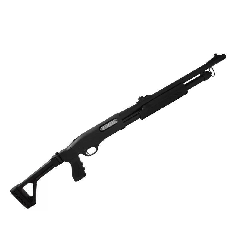 Con un cañón corto de 48 cm pavonado, culata rebatible de polímero con grip de pistola y capacidad de 5+1 cartuchos, ofrece maniobrabilidad y poder de derribo devastador a corta distancia.