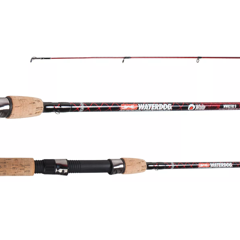 Caña de pescar de 2 tramos y 270 cm de largo, marca Waterdog modelo White Widow. Tipo de pesca: variada.