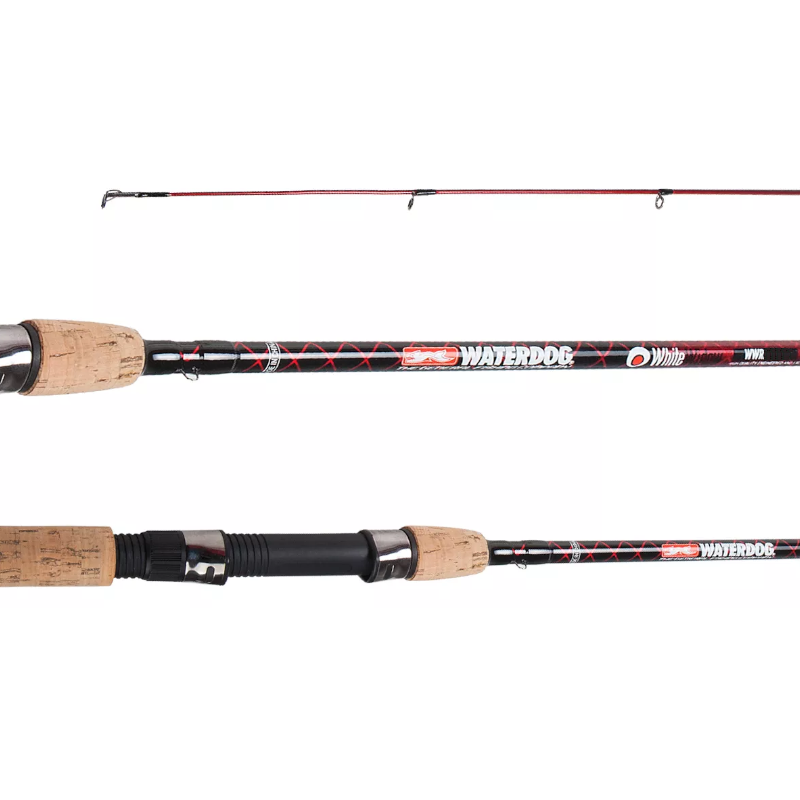 Caña de pescar de 2 tramos y 240 cm de largo, modelo White Widow. Tipo de pesca: variada.