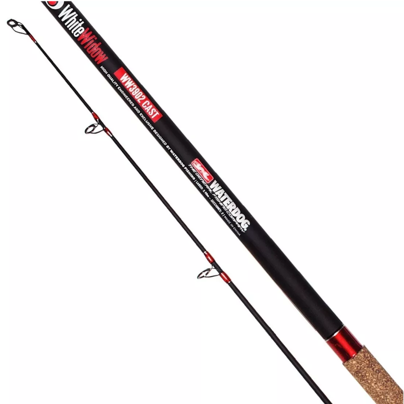 Caña de pescar de 2 tramos y 390 cm de largo, modelo White Widow. Tipo de pesca: lance de costa.