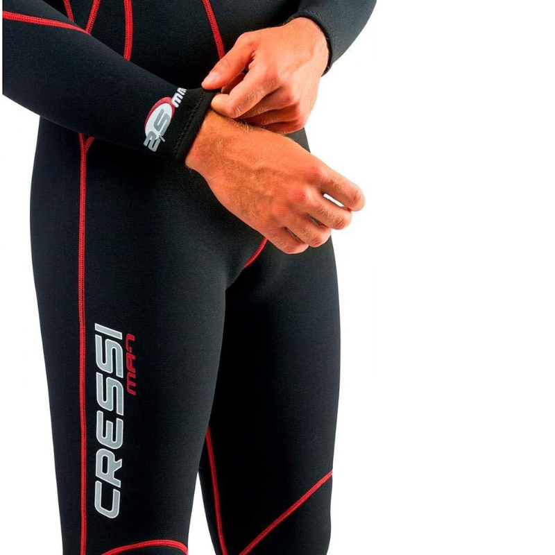 Mono pieza, sin capucha, con mangas largas y piernas de 2.5 mm de espesor.