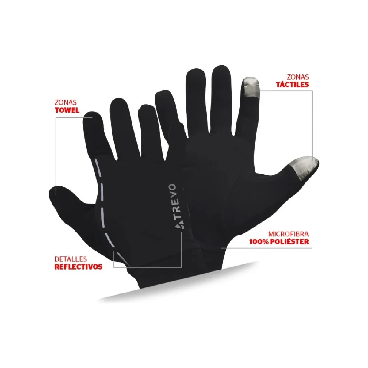 - Material: 100% poliéster respirable con microfibra, índice táctil y Fiber Towel.