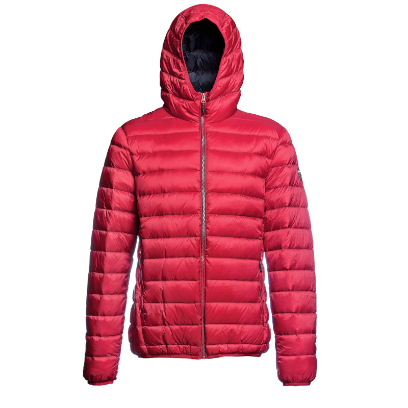 Su confección consta de una exhaustiva seleccion de las mejores y más livianas plumas de ganso y un 10% de relleno de pluma tradicional que provocan que el duvet permanezca esparcido por toda la prenda cubriendo cada parte de la prenda el diseño de tiras horizontales colaboran en esta tarea dandole una textura y una apreciación extra.