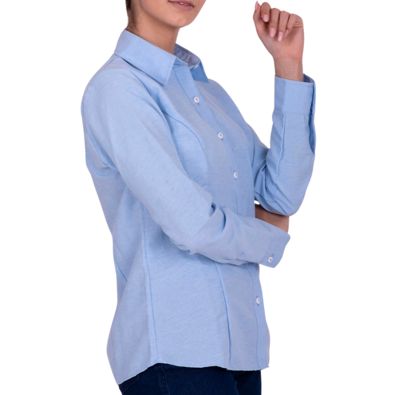La camisa Oxford Mary manga larga, resulta ideal para trabajo de oficina debido a la sutileza en su confección.