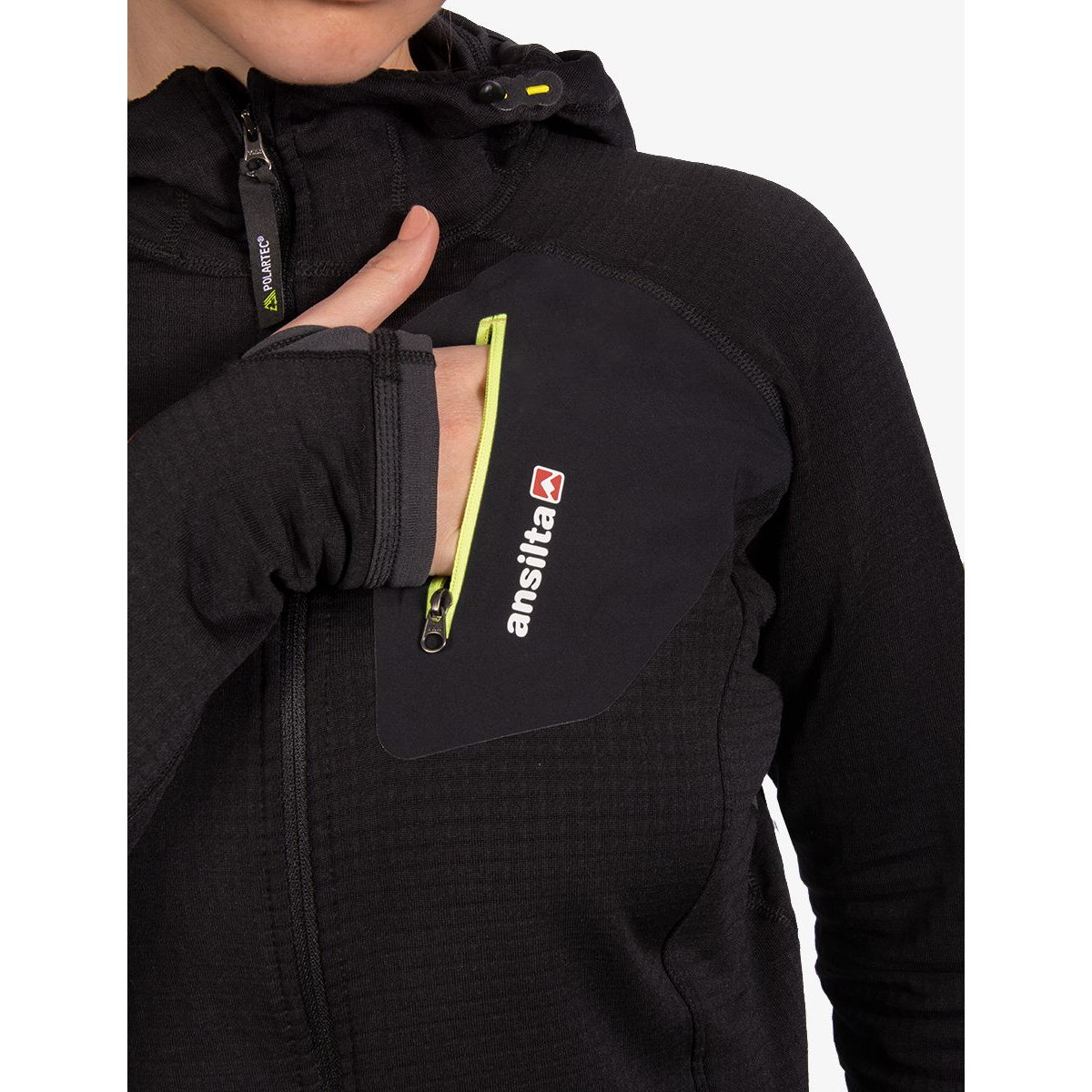 Campera de construcción híbrida diseñada para actividades aeróbicas, un infaltable para carreras de aventura donde el bajo peso, respirabilidad, secado rápido y compactabilidad son indispensables. Combina dos tejidos POLARTEC POWER GRID de diferente peso según las zonas que requieren mayor abrigo, o las que necesitan mayor ventilación, elasticidad y movilidad con menos volumen de tela. Estos tejidos poseen fibras recicladas, acabado odor resistant y protección solar.