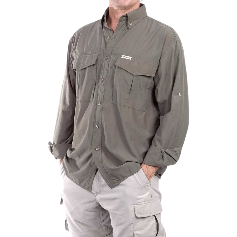 Camisa confortable, versátil para viaje y pesca hecha con tela muy liviana con protección solar. Mangas largas.