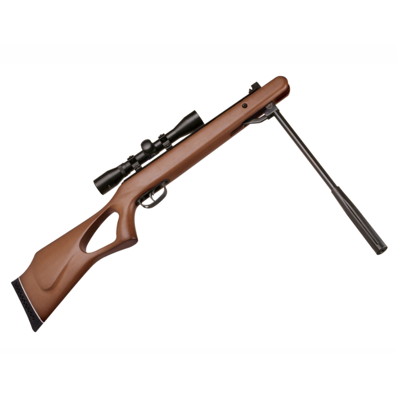 Fusil de aire comprimido de cañón abatible con pistón de nitro, ideal para caza menor (liebres, aves) y tiro deportivo. Con un cañón estriado de 15 pulgadas y velocidades de hasta 1200 fps (aleación) o 1000 fps (plomo), entrega 18 ft-lbs de energía, garantizando potencia y precisión a un alcance efectivo de hasta 55 metros. Su culata de madera dura ambidiestra con diseño thumbhole y gatillo ajustable de dos etapas ofrece comodidad y control. Incluye una mira 3-9x40mm con retículo mil dot y montaje monopieza reforzado, con un peso de 3.13 kg. El pistón de nitro reduce el retroceso y el ruido en un 70%, asegurando disparos suaves y silenciosos.