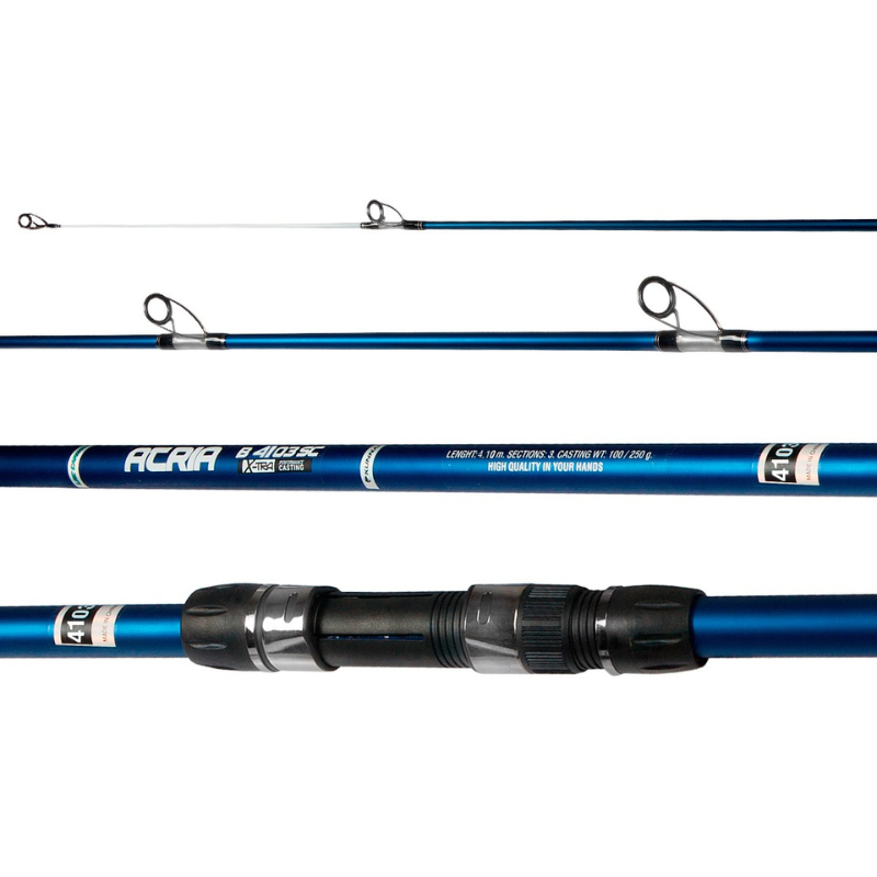 Caña de pescar de 3 tramos y 410 cm de largo, modelo ATRIA B 4103 SC. Tipo de pesca: surfcasting.