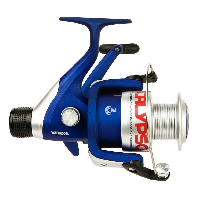 Reel Frontal Waterdog Calypso 402 con 2 rulemanes de manivela reversible, con una particular alarma de pique.