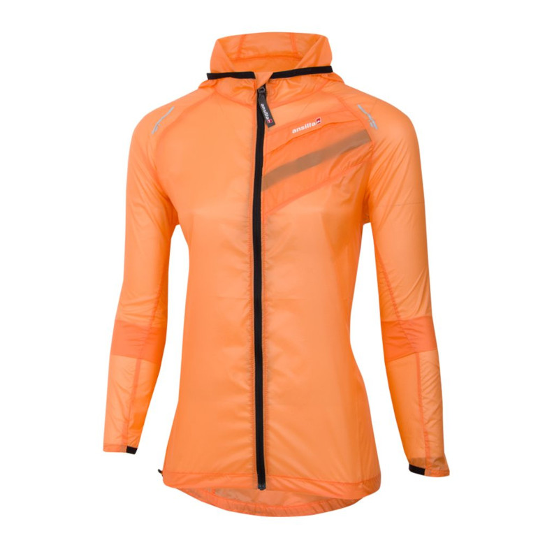 Campera femenina ideal para llevarla dentro de un bolsillo o una riñonera durante la práctica de carreras de aventura, running o ciclismo. Muy liviana. Ofrece una gran resistencia al viento y es totalmente respirable. Confeccionada con tejido Pertex®